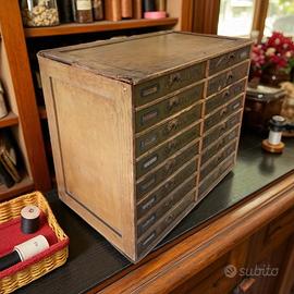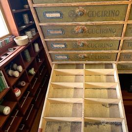 Una bottega d’altri tempi, il profumo del legno, il tintinnio dei bottoni di vetro, e lei… la cassettiera. Non una qualunque, ma una delle vere, quelle da merceria, che hanno vissuto anni di fili colorati, aghi e clienti con l’orlo da sistemare per la domenica.