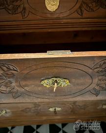 antica cassettiera in legno con intagli e fregi dimensioni: largh 121, prof 50, h 100 ideale per lavori shabby 4 cassetti di cui 3 con serratura ritiro in loco. non spedisco