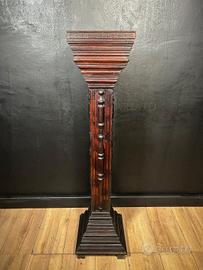 Elegante colonna portavaso realizzata in legno massello, caratterizzata da una