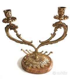I candelabri a due luci, squisitamente realizzati in ottone e sostenuti da una base ovale in marmo color miele, non sono solo oggetti funzionali, ma anche straordinarie opere d'arte che ravvivano qualsiasi spazio. Il loro design incorpora in modo intricato rappresentazioni mitologiche, in particolare i draghi, creature simboliche intrise di un ricco significato mitologico.