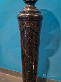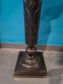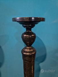 Antica coppia di colonne in legno finemente intagliato, laccato e dipinto.