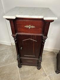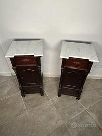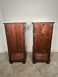 Coppia Di Comodini epoca XIX siciliani In Legno Di Noce con doppio cassetto e Marmo Bianco Di Carrara.