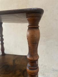 Libreria a giorno étagère in legno di noce fine '800 da restaurare. Colonnine tornite di ottima fattura, ripiani a 36 cm l'uno dall'altro. Presenta nel ripiano più basso un pezzo mancante come da foto, segni di usura del tempo. Necessita di restauro. Belle proporzioni 42x46x125h. possibile spedizione da concordare.