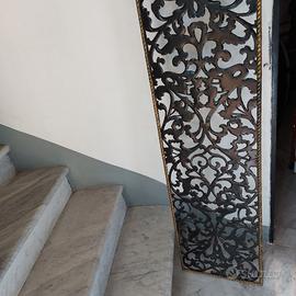 Antica grata in lamiera battuta facente parte degli arredi del bar del "Teatro Del Ridotto" di Venezia (epoca 1700). Wikipedia cita: Nel 1700 vi erano circa 20 teatri attivi. Tra quelli che non esistono più, possiamo citare i più celebri Teatro Della Testa, Teatro Del Ridotto (chiuso recentemente e adattato a hotel di lusso). Misura cm. 40 x 262 e si presta anche per diventare una testata del letto.