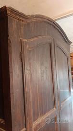 Antica guardaroba da restaurare , epoca inizi 800' , con centina anteriore ( fatta in un unico pezzo ) rotonda , fianchi e antine pannellate , in legno di pioppo di fiume , bordi anteriori smussati .