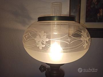 E' perfettamente funzionante, completa di lampadina (monta quelle con attacco normale piccolo), lo zoccolo della base in metallo ha qualche screpolatura, ma direi e' una cosa trascurabile. Oggetto bello e affascinante.