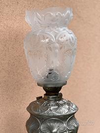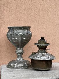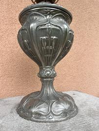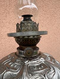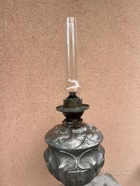 ANTICA LAMPADA A PETROLIO IN ANTIMONIO FINEMENTE CESELLATO, DITMAR BRUNNER 1880-1930
