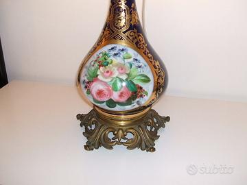 vendo antica lampada ad olio, in porcellana blu e oro. Piede alla base in bronzo. Condizioni perfette, altezza cm. 60. Già cablata con cavo elettrico. Per info 3478271964