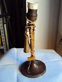 Articolo raro degli anni '30 /'40 in ottone ramato bronzato,esteticamente molto piacevole che offre resistenza alla corrosione e all'appannamento unitamente alla sicurezza di stabilità per il suo più che discreto peso per evitare accidentali ribaltamenti in caso di urto . Funzionante con lampada con attacco a vite grande,con il suo spinotto originale d'epoca a 2 perni in bachelite gialla ,con i suoi due bracci in ottone massiccio per l'orientamento della luce in basso o in alto e infine con il suo interruttore a farfalla per la diffusione e regolazione dell'intensità della luce . Lampada che conserva tutta la sua originalità d'epoca adatta per comodino da camera o per tavolo da studio a secondo delle esigenze personali . Articolo veramente interessante per collezionisti o comunque per amanti del genere .