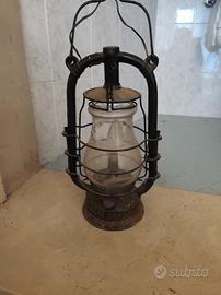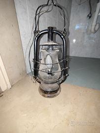 Vendo lanterna antica a petrolio primi '900 modifica a elettrico (40€), con supporto artigianale in ferro battuto per appenderla a muro (110€). Come si vede in foto il vetro della lampada è rotto, si può trovare tranquillamente online.