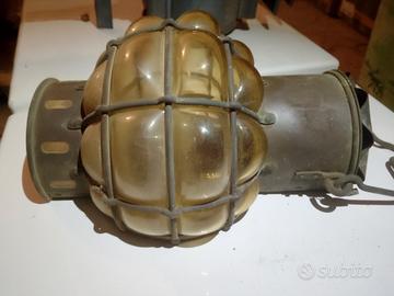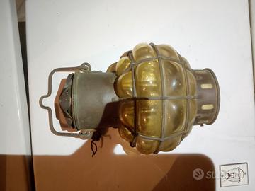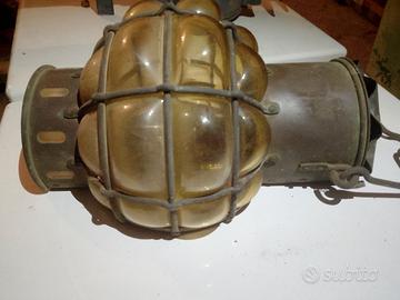 Antica lanterna navale da ancora, nota come Ankerlicht, risalente alla fine del XIX o inizio del XX secolo, realizzata in metallo con un vetro soffiato ambrato a bolle provenire da priorità privata Como lago