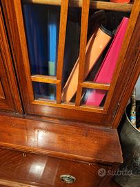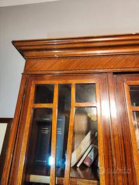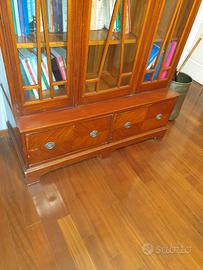 Libreria tre ante vetri molati e due grandi cassetti in legno di mogano di manifattura inglese della seconda metà dell'ottocento stile Vittoriano - Dim. : h 210 - l 125 - p base 54 - p corpo 40 - DA RESTAURARE - CONSEGNA SOLO IN LOCO