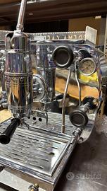 Macchina da caffè professionale Condor Torino, produzione italiana risalente agli anni ’40/’50, autentica espressione della tradizione dell’espresso italiano. Modello a leva dal grande fascino, caratterizzato da linee eleganti e da una presenza scenografica tipica delle macchine d’epoca. La macchina è stata oggetto di un accurato restauro estetico, che ne ha valorizzato le caratteristiche originali, riportandola a uno stato di forte impatto visivo: •cromature lucidate e rigenerate •struttura completa e ben conservata •illuminazione posteriore ripristinata Si presenta oggi in condizioni eccellenti dal punto di vista estetico, ideale per esposizione in ambienti di prestigio o per arricchire spazi dedicati al mondo del caffè. Oggetto sempre più difficile da reperire sul mercato, particolarmente apprezzato da collezionisti e appassionati