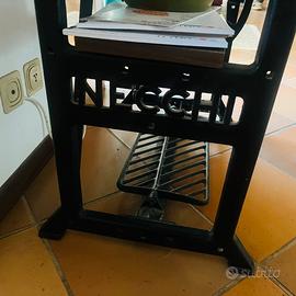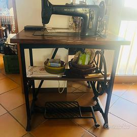 Antica Macchina da cucire “industriale” Necchi completa in ferro posizionata sul suo banco in legno originale. Molto bella. Molto ben conservata