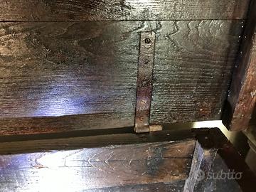 Mobile madia restaurato in castagno massello.Si usava in passato per l'impasto e la conservazione del pane e della pasta.Anta verticale frontale, ribaltabile in orizzontale per aumentare e ottimizzare la superficie di lavoro per l'impasto.Sottostante ampio vano contenitore accessibile con due sportelli.Cerniere e ferramenta originali.Dimensioni: larghezza cm 129, profondità cm 65, altezza cm 101.