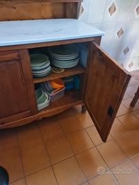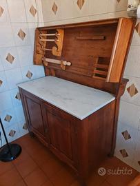 Antica Madia in Legno Massello con Piano in Marmo