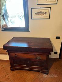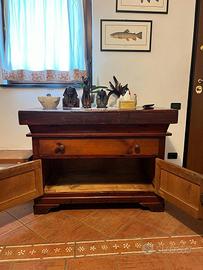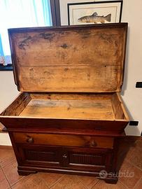 Madia di fine 800 in legno di pitch pine in perfetto stato di conservazione, con portelloribaltabile per impastare.