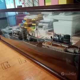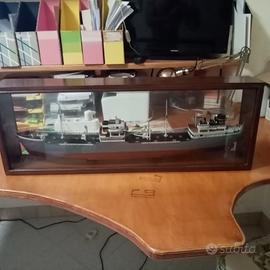 Condizioni eccellenti antica nave in una teca di legno e vetro RARO E UNICO PER COLLEZIONISTI ritiro a mano a Calcata provincia Viterbo Misure 90x30