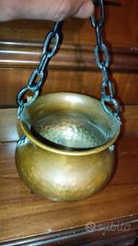 La martellatura visibile, la patina naturale del tempo e i dettagli curati confermano il valore storico ed estetico di questo pezzo unico.
