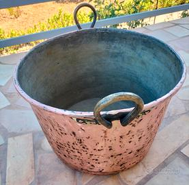 Antico Calderone in rame dei primi del '900. Peso circa 6 Kg. Altezza circa 33 cm. diametro circa 45 cm.