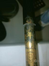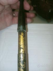 oggetto vintage lavorato a mano tutta in metallo e lega chiusa cm 45 aperta cm 68 decorazioni in oro floreali su smalto nero presenta qualche scolorimento da utilizzo sul cannello databile 800 ulteriori info e foto su richiesta collezione privata oggetto presenta le scritte Quianlong (1735/1796) sistema degli 8 anni oggetto destinato a classi elevato quindi può essere successivo e si suppone 1800