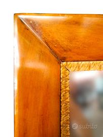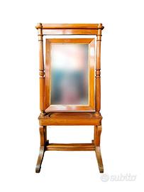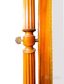 Antica psiche neoclassica in noce biondo con eleganti colonne con scanalature intagliate