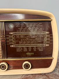 Antica radio a valvole, anni '50, 47x30x18cm Minerva a valvole. Struttura in noce, sana, completa di elementi, ma oggetto di arredo.