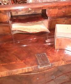 Antica ribalta napoletana in radica di noce e profilo e rosoni centali in bois de rose Napoli 1700