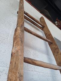 antica scala a pioli in legno costruita a mano. buone condizioni. misure: lunghezza 260cm larghezza 46cm