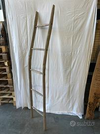 Questa scala rustica, realizzata artigianalmente da rami di legno naturale di ciliegio invecchiato, misura 1,85 di altezza con una curva elegante che le conferisce un fascino vintage e organico. I cinque pioli robusti fatti completamente a mano e levigati dal tempo, la rendono perfetta come elemento decorativo per interni: ideale per appendere coperte, asciugamani o piante in soggiorno o bagno. Un pezzo unico di arredo eco-friendly, che porta un tocco di natura selvaggia nella tua casa,