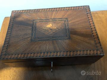 Antica scatola in legno portagioie con specchio interno Lung 27 larg 18 h 9