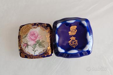 antica scatola Limoges originale con due timbri con decori in oro