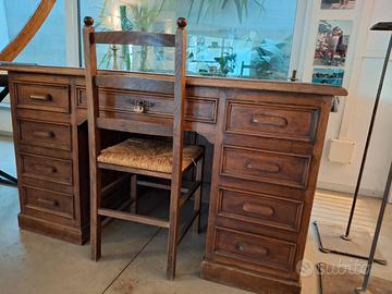 Bel pezzo di arredamento adatto per uno studio importante, ma anche per arredare un angolo della vostra casa con sapore di altri tempi. profonda 78 cm lunga 138 cm alta 80 cm il cassrtto centrale è largo 59 cm i cassetti più piccoli 30 cm