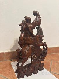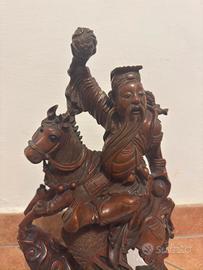 In vendita un raffinato capolavoro dell’arte lignea cinese, risalente presumibilmente al periodo tardo Qing (fine XIX secolo) o alla prima epoca della Repubblica. La scultura è ricavata da un unico blocco di legno duro (probabilmente bosso o palissandro), caratterizzato da una venatura fitta e una splendida patina naturale lucida.