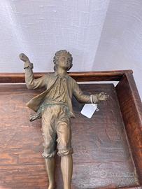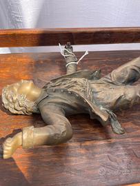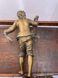 Scultura in bronzo – giovane figura dinamica, inizi ‘900 Interessante scultura in bronzo risalente ai primi anni del ‘900, raffigurante un elegante giovane in una postura originale e dinamica. Un pezzo dal forte impatto visivo, ideale per collezionisti o per arricchire ambienti con un oggetto d’epoca.La scultura presenta una bella patina coerente con l’età. Da segnalare l’assenza della base, aspetto già considerato nel prezzo. Epoca: inizi ‘900 Materiale: bronzo Soggetto: giovane figura maschile Dimensioni: come da foto Condizioni: buone, con segni del tempo; baseOggetto decorativo di grande fascino storico e artistico.Spedizione disponibile previo accordo con l’acquirente oppure consegna a mano.Contattami per ulteriori informazioni o foto!