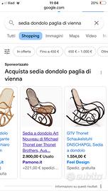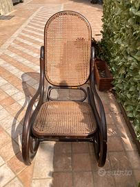 Sedia a dondolo antica , perfettamente funzionante in paglia di Vienna.