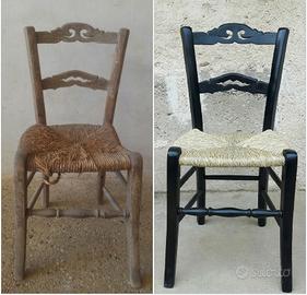 Nelle foto si possono valutare le condizioni prima del restauro, impagliatura con canna palustre.