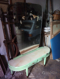 Antica specchiera , epoca anni 40 . In legno smaltato . Completa di specchio e piano in vetro.