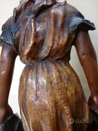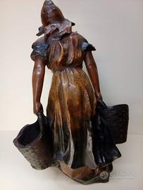 Antica Statua in gesso dipinta e patinata 349 - Grandi dimensioni - Vintage anni 40 - Dimensioni: altezza 65 - larghezza 42 base 34 x 19 - Figura : Giovane donna olandese con ceste. Da segnalare piccole mancanze al bordo della cesta di sinistra. Ottime condizioni nel complesso. Possibilità di spedizione con adeguato imballo e tracciabilità.