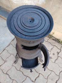 Vendo antico stufa a legna in ghisa "stile parigina", tutta originale,con griglia interna, altezza cm 65 circa.Ideale per arredamento. tel.3495274598