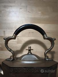 Antica Teiera, detta anche Samovar, con base ottagonale in metallo argentato della Sheffield Collection (come si vede nella quarta foto), completa di un supporto riscaldante con bruciatore a spirito. In ottime condizioni.