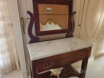 Propongo in vendita questa splendida toeletta/mobile da toilette di epoca antica (presumibilmente seconda metà del 1800, in stile Luigi Filippo). Un pezzo d'arredo affascinante, ideale per ingresso, bagno di design o camera da letto.