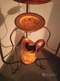 antica toeletta in ferro battuto a mano con tris ceramica dipinta a mano