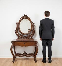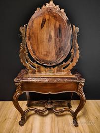 Antica Toilette Luigi Filippo con Specchiera e Piano in Marmo
