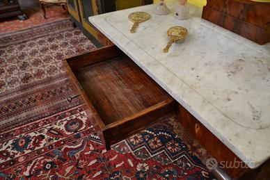 Provvista di tre cassetti allineati sotto il piano in marmo con 1 chiave e serratura originale dell’epoca.