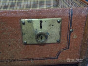 Bellissima valigia anni '20 condizioni esterne e interne ottime,ben rifinita con fasce in legno,serrature funzionanti,fornita di chiave originale.