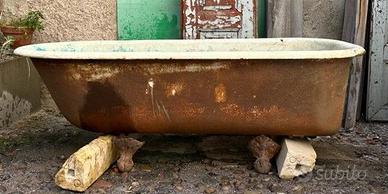 vasca da bagno americana dell'inizio 900 in ghisa con interno in ceramica in ottimo stato e piedini removibili a zampa di grifone