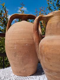 Spettacolare coppia di antiche terrecotte realizzate a mano, tipiche della civiltà contadina; erano utensili d'uso quotidiano per le generazioni dei nostri nonni.