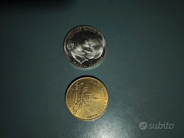 Antiche medaglie da collezione anni una celebrativa in onore di papà leone secondo, ed una commemorativa per lourdes