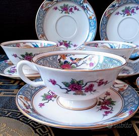 Antique,Lenox MING Early Black Mark,6 Tazze da Tè, Set(s) Uccelli del Paradiso in finissima porcellana,dipinto a mano.